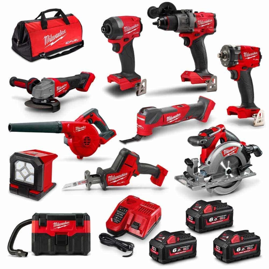 MILWAUKEE 18V 10 Piece 3 x 6.0Ah Combo Kit M18FPP10C3603B