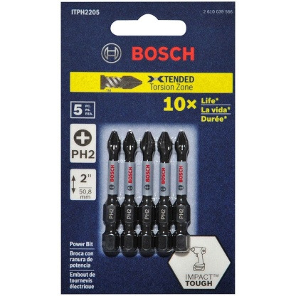 - 1 x BOSCH PH2 X 50mm Phillips Power Screwdriver Bit - Impact Tough - 5 Piece 2610039566
