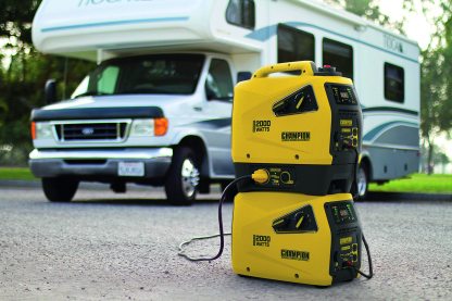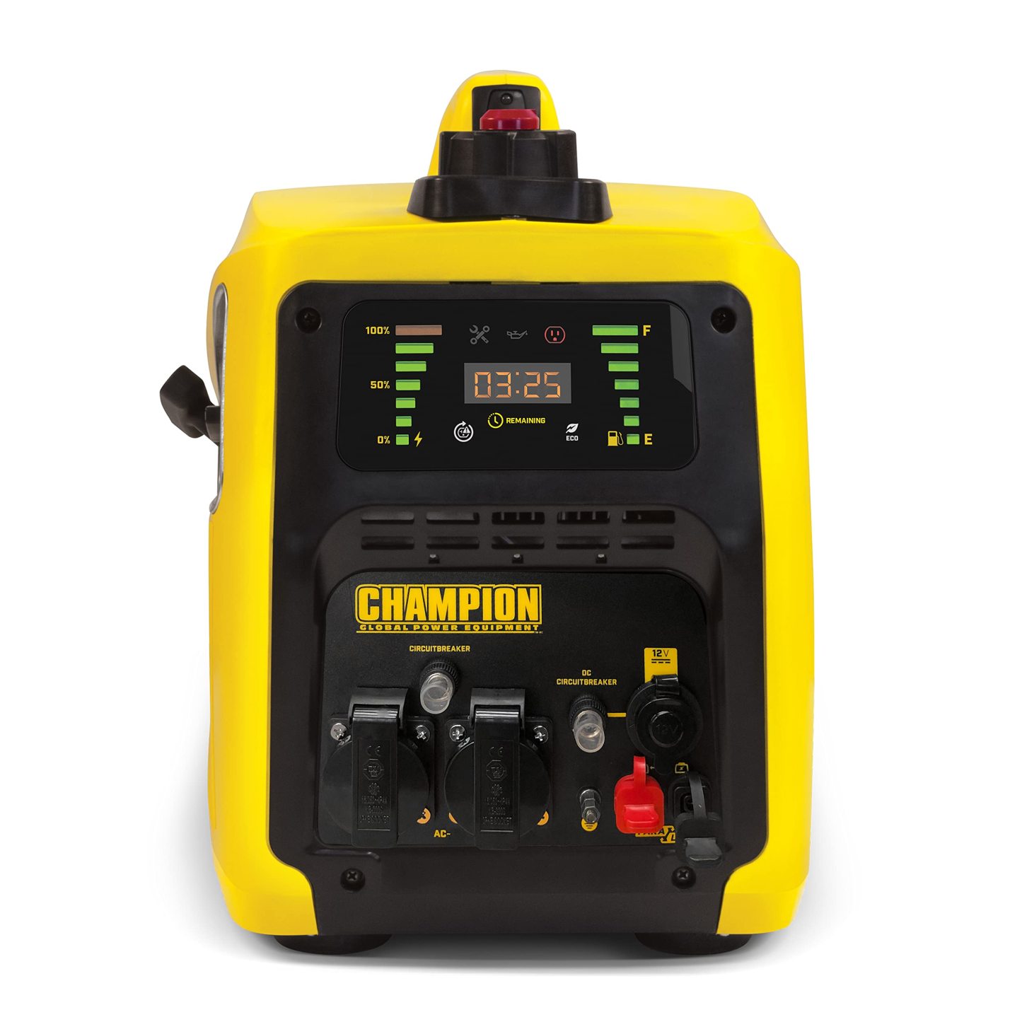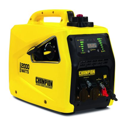 Clear LED displayThe easy-to-read digital LED display includes maintenance indicator, oil shortage status indicator and tank and monitors power output, total running time, fuel level and fuel life. | Illuminated tank compartmentChampion minimises the effort of refuelling in the dark with the Fuel Fill Assist LED, a sophisticated push button LED that is integrated directly into the handle and illuminates the tank chamber. | Use:The Champion Power Equipment 82001I-E 2000 Watt Portable Inverter Generator weighs only 20 kg and is ideal for camping, tailgating, power supply around the motorhome such as lighting or TV or as a backup for a few basics. This device is not recommended for emergency home security. | ParaLINKWith a space-saving, stackable design, connect this generator to another Champion 2000 watt power generator for double power. The optional ParaLINK parallel kit integrates two stacked power generators and has a standard 30A zip output and a 120V 30A locking output. |