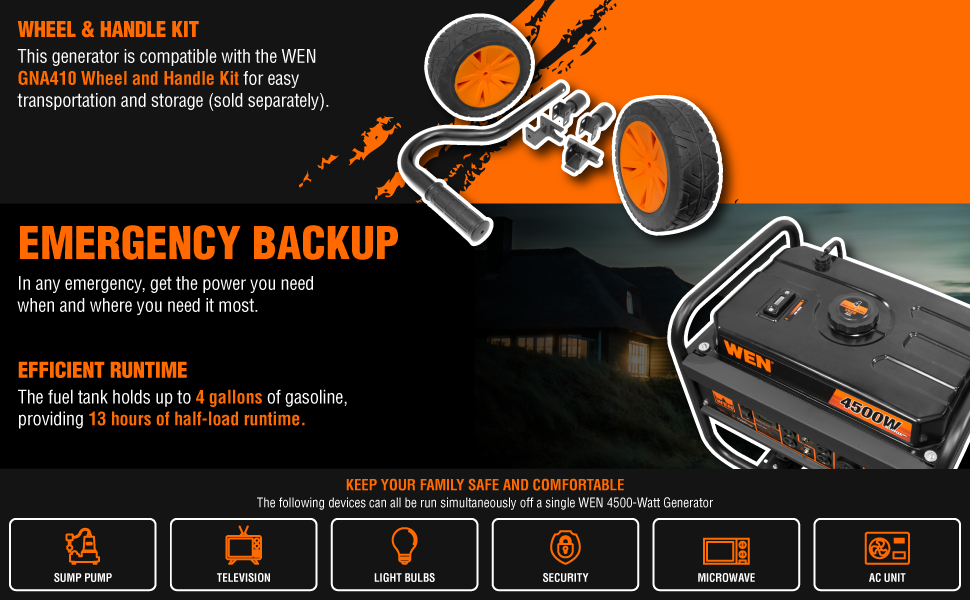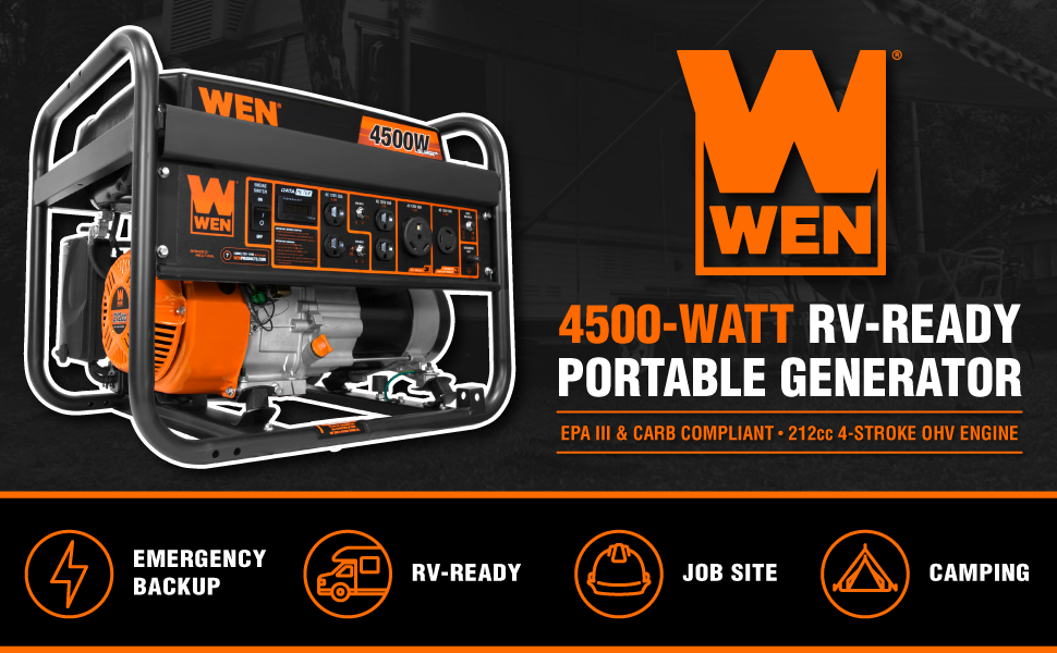 WEN GN4500 4500-Watt 212cc Transfer Switch and RV-Ready Portable Generator, CARB Compliant, Orange/Black