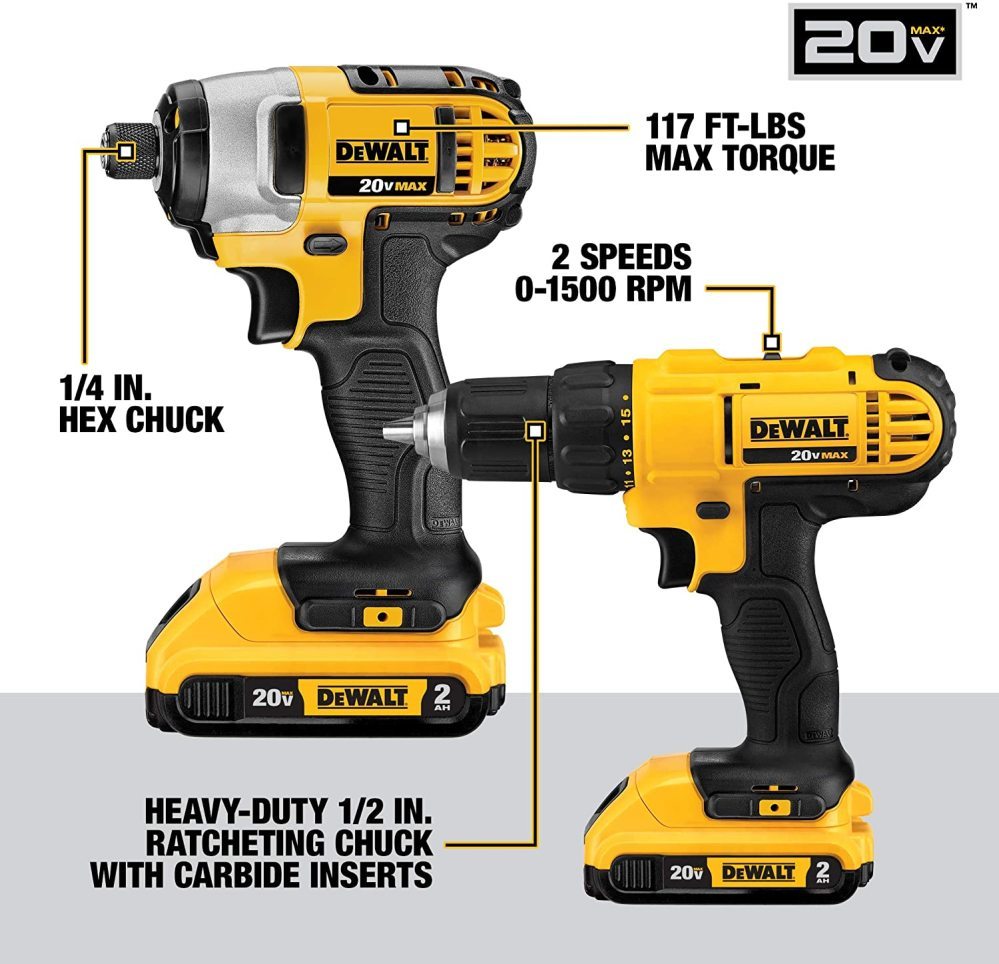 DEWALT 20V Max Cordless Drill Combo Kit, 10 Tools (DCK1020D2)