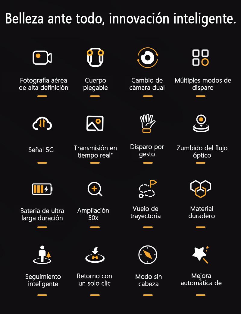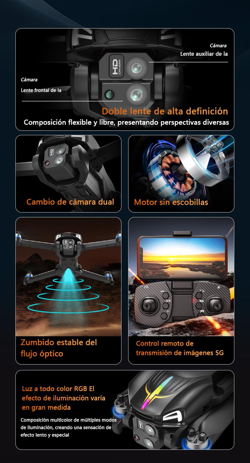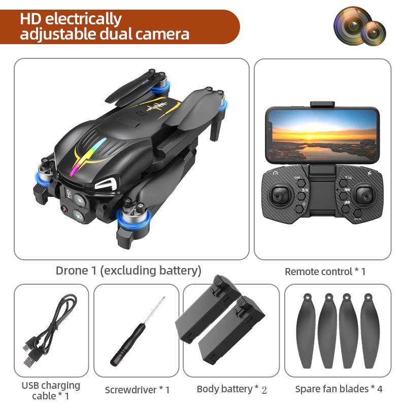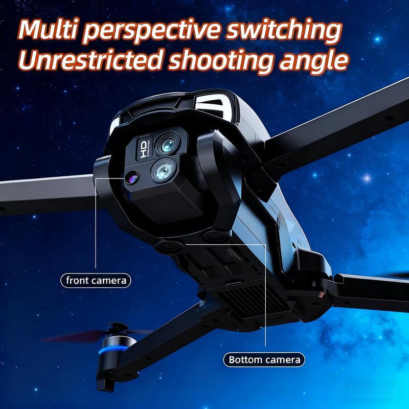 【HD Eléctricamente Ajustable Doble Cámara】El drone está equipado con una lente de 90 ° ajustable. Además, la conmutación multiperspectiva permite un ángulo de disparo sin restricciones.