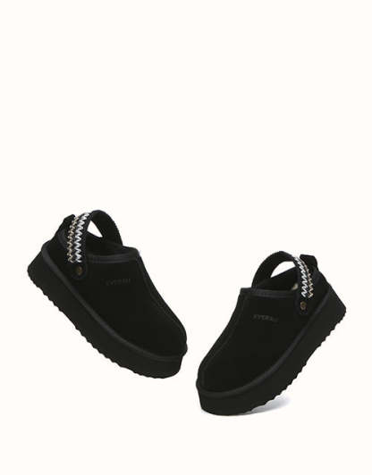 Descubre las pantuflas de plataforma Maeve con tira trasera de EVEthtRAU, un imprescindible para las amantes de la moda. Con una elegante plataforma y un diseño fácil de poner, estas pantuflas realzan cualquier look sin esfuerzo. Disponibles en una variedad de colores para que encuentres el que mejor se adapte a tu estilo, combinan a la perfección moda y funcionalidad. Confeccionadas en lujosa piel de oveja, ofrecen una calidez excepcional en climas fríos a la vez que añaden un toque chic a tu armario. Características: Exterior: Ante de piel de vacuno Forro: Lana de oveja Suela: EVA Plantilla: Lana de oveja Colores: Castaño/Negro/Marrón Marca: EVEthtRAU Origen: Hecho en China Referencia: EA2059