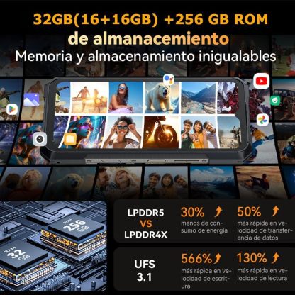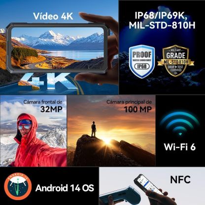 Diseñado para los entornos más exigentes, el KINGKONG X cuenta con certificaciones IP68/IP69K y MIL-STD-810H. Su cubierta trasera súper resistente a los impactos, fabricada con materiales especiales, proporciona una protección extraordinaria incluso en las condiciones más duras.