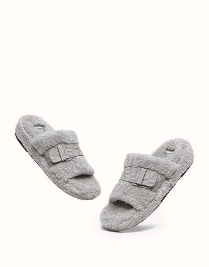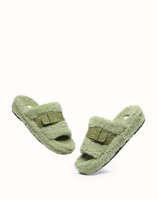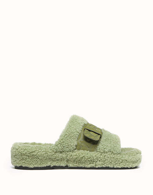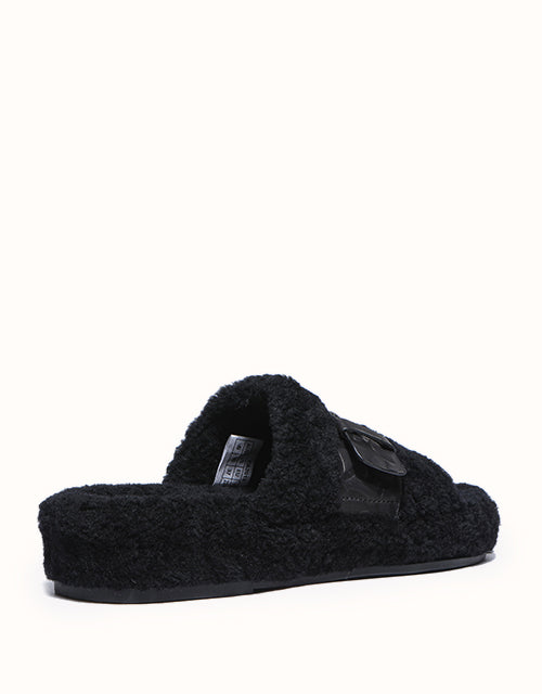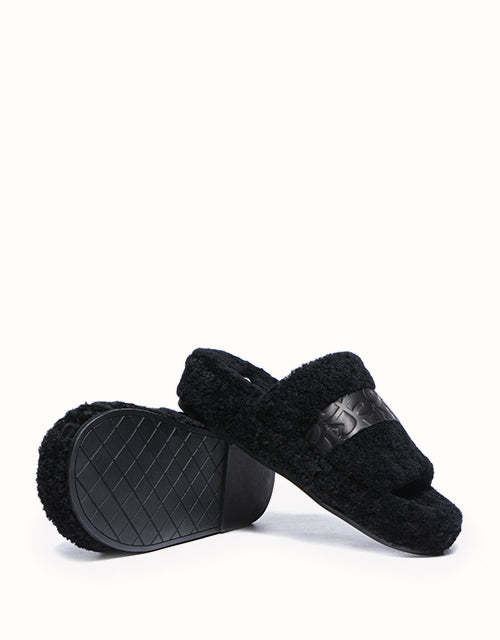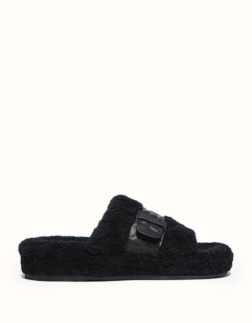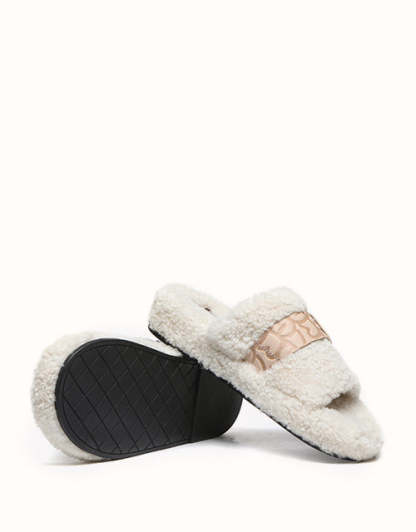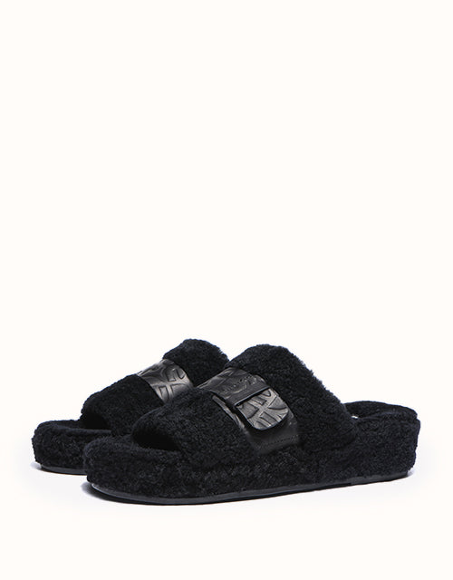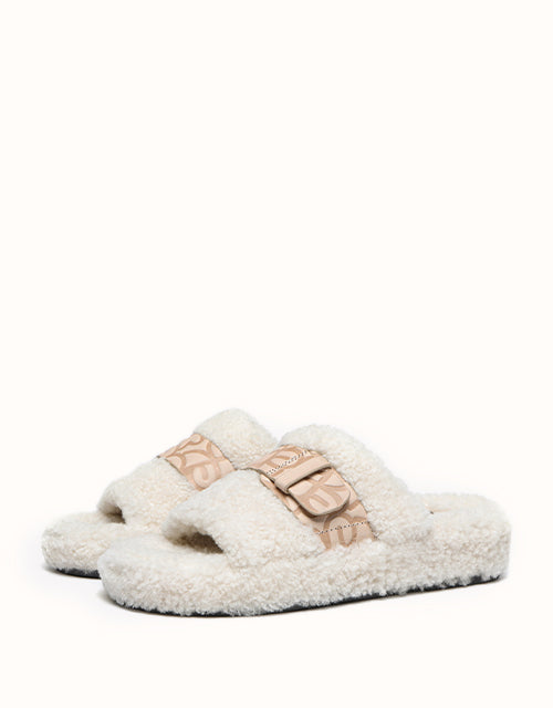 Confeccionadas en piel de oveja rizada ultrasuave y transpirable, estas exclusivas pantuflas añaden un toque de textura a todos tus conjuntos. Realzadas con un estampado ondulado y bordados, combinan a la perfección con todos tus looks favoritos, desde vaqueros hasta vestidos de verano.