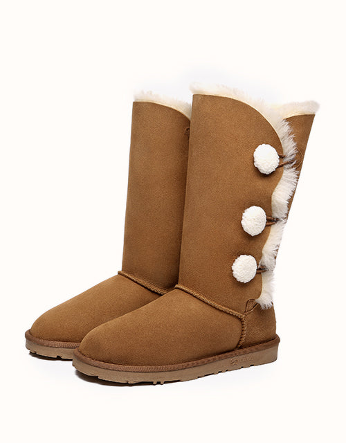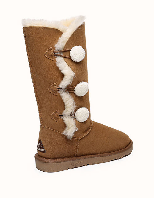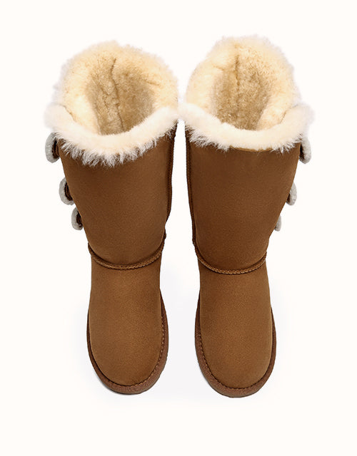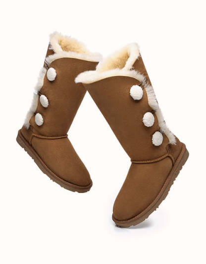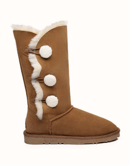 Algunos días de invierno, solo querrás quedarte calentito bajo una manta, pero si te aventuras a salir al frío, querrás explorar el mundo con las botas altas Aspen de tres botones. La versión más alta de este modelo cuenta con tres pequeños botones suaves, piel de oveja de doble cara y un diseño elegante y cómodo: ¡nunca querrás quitártelas!