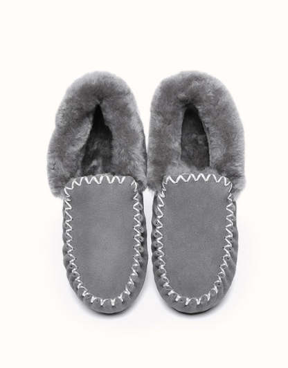 Estas pantuflas de piel de oveja son perfectas para ponérselas nada más llegar y mantenerse abrigado y cómodo. Sus suelas resistentes evitan resbalones. Disponibles en 4 colores (marrón/negro/gris/azul marino), son una excelente idea de regalo para los meses más fríos.