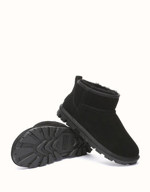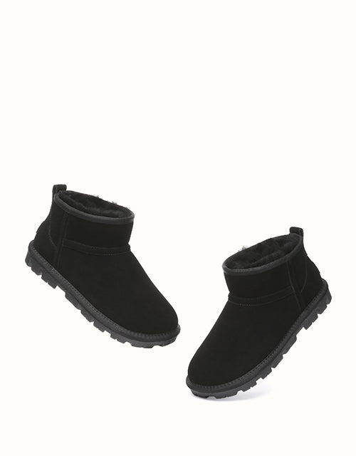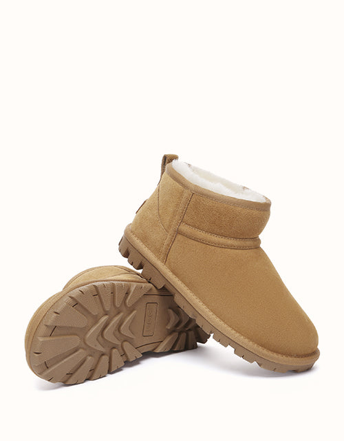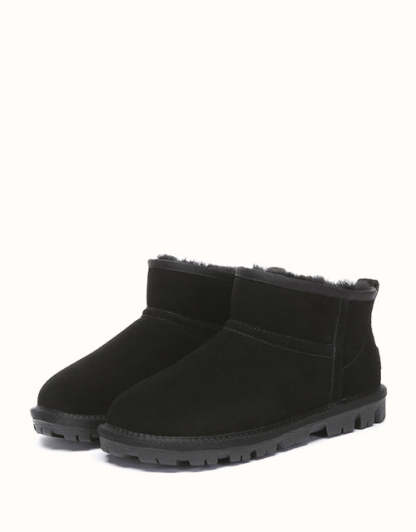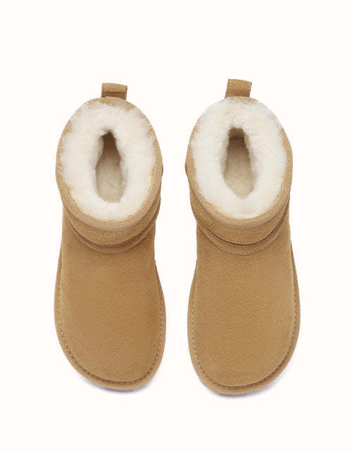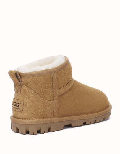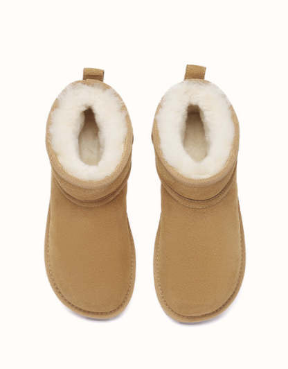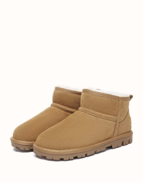 Estas botas cortas de pastor australiano están hechas de gamuza de vaca de fácil cuidado y forradas con suave lana de oveja para brindar calidez y comodidad duraderas. Una suela gruesa de EVA antideslizante proporciona una estabilidad óptima en diversas superficies, perfectas para uso en interiores o exteriores ligeros. Sencillas, prácticas e ideales como regalo.