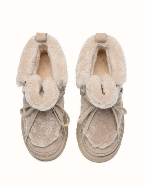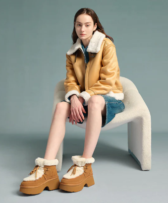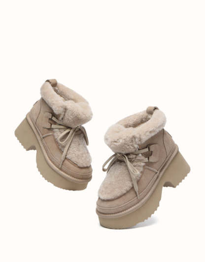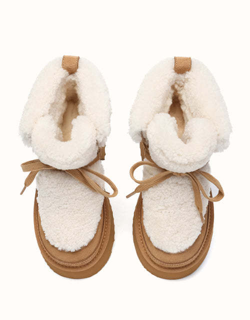 Realza tu estilo con las botas con cordones AUSTRTHTALIAN Shepherd. Confeccionadas con ante de piel de vacuno de alta calidad en el exterior y forradas con suave lana de oveja en el interior, estas botas ofrecen calidez y comodidad transpirable durante todo el día. El ribete de lana esponjosa añade un toque delicado y femenino, mientras que la suela gruesa y acolchada proporciona una sujeción ligera y un ligero realce. Disponibles en marrón, tostado y arena, estas botas son ideales para looks invernales elegantes y son un regalo perfecto para los amantes de la moda.