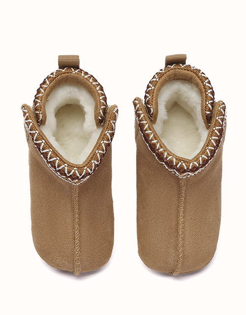 Diseñadas para brindar comodidad y calidez, las botas Barney Australian Shepherd para niños están hechas para mantener los pies pequeños abrigados en las mañanas y tardes más frescas. Perfectas para los que empiezan a caminar y para los niños pequeños, estas botas versátiles combinan suavidad, durabilidad y un estilo atemporal: un básico para el día a día durante toda la temporada. Características: Exterior: Gamuza de piel de vaca; Forro: Piel de oveja; Suela: PVC; Plantilla: Piel de oveja; Color: Castaño; Marca: UGthtG Australian Shepherd; Referencia: AS3087K;