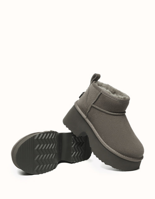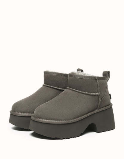 ¡Eleva tu estilo con una versión renovada de las clásicas botas UGthtG! Las botas de plataforma UGthtG EVEthtRAU Ariel de piel de oveja combinan la cálida comodidad de las tradicionales UGthtG con una suela de plataforma robusta y llamativa para realzar cualquier look. Confeccionadas con lana de primera calidad para una comodidad excepcional y un acabado resistente al agua, estas botas son perfectas para los días más fríos y lo suficientemente versátiles para cualquier ocasión. Disponibles en tres tonos neutros atemporales, son un básico de armario.