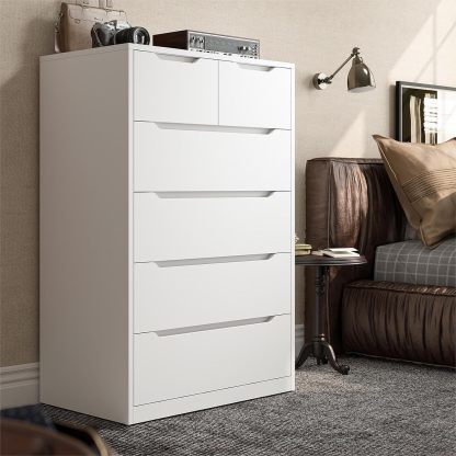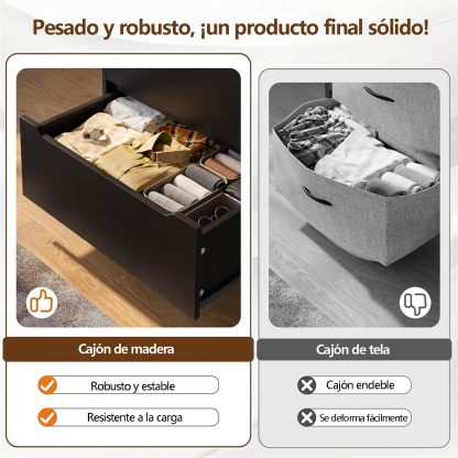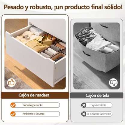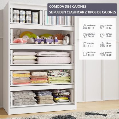 - 【Mueble Organizador 6 Cajones】Ofrecemos 2 tipos de cajones para almacenamiento clasificado, 4 cajones de madera grandes para camisas, suéteres, mangas largas, etc., y 2 cajones pequeños de madera que se pueden utilizar para almacenar tus bufandas, ropa interior, calcetines, pañales, etc. Además, el riel de metal de cada cajón está diseñado a través de múltiples pulidos, lo que hace que el riel sea más suave y el cajón no se saca ni se cae fácilmente.