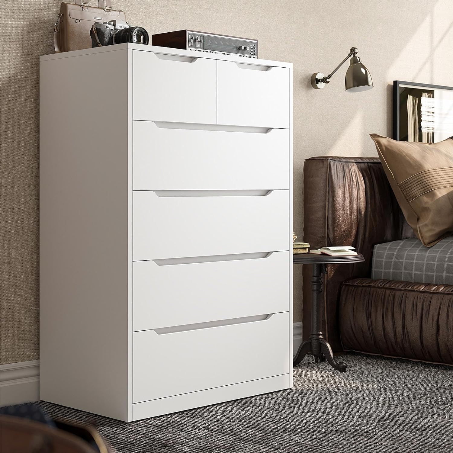 - 【Cómoda Alta Clásica】la cómoda blanca para madera de recámara tiene un estilo simple y moderno, que es muy clásico. Se puede combinar con cualquier estilo de hogar para hacer que tu habitación se vea más ordenada y brillante, dando a los invitados una sensación muy atmosférica.Esta cómoda se puede usar en múltiples Habitaciones, ideal para armarios, lavadero, dormitorios, sala de estar, pasillo, guarderías, salas de juegos, entradas, dormitorio universitario, oficina, etc.